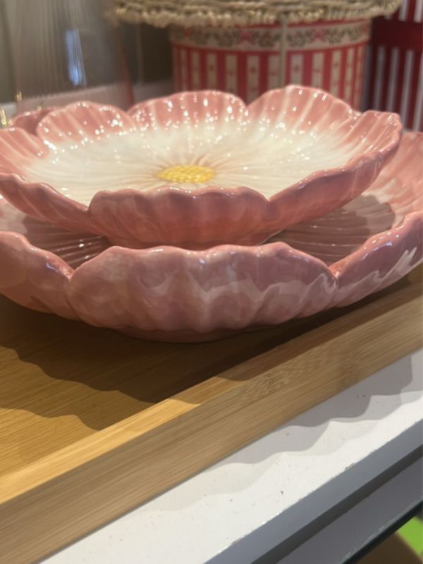 Prato de sobremesa rosa com design delicado e elegante. Perfeito para servir doces, bolos e deixar sua mesa mais charmosa. 🍰🌸